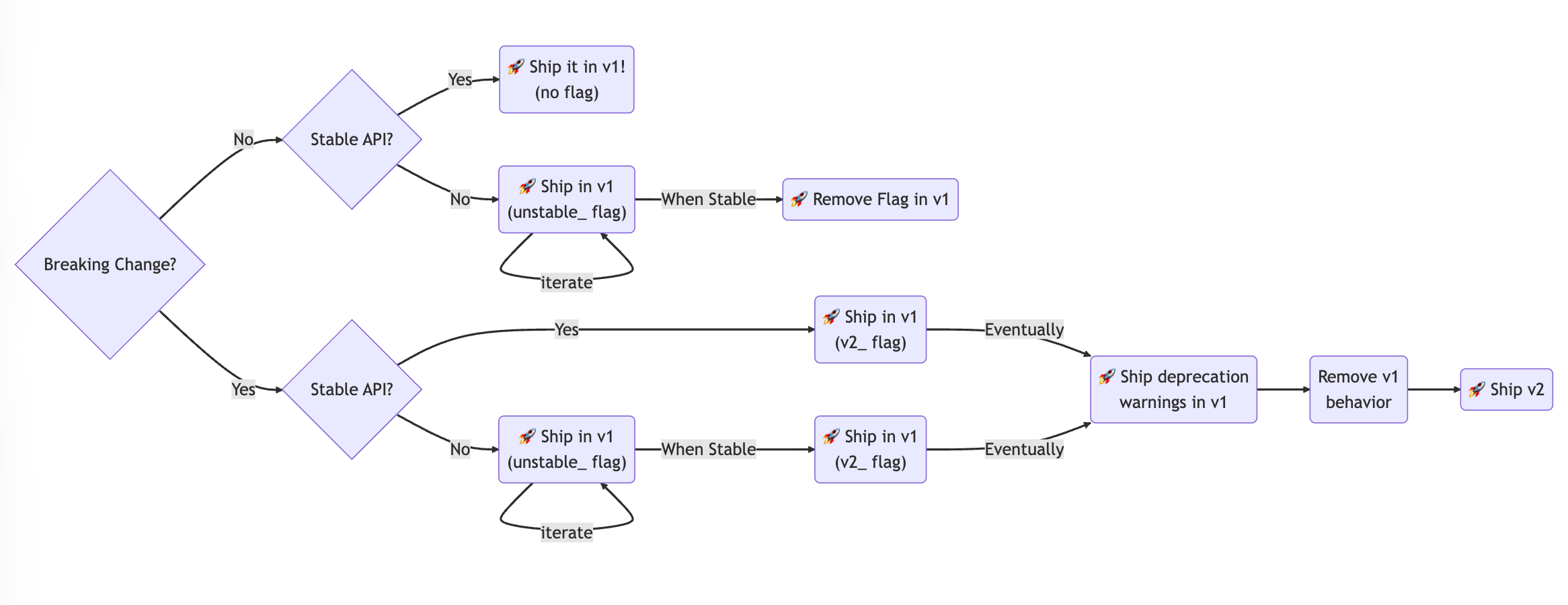 Future flags can come in one of 2 forms: future.unstable_feature or future.v2_feature and the lifecycle of a flag will depend on the nature of the change and if it's breaking or not. The decision flow for a new feature looks something like this: